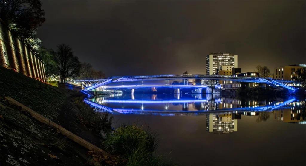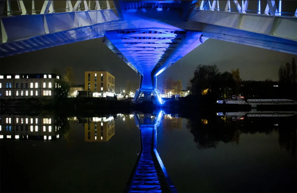 Etude et mise en lumière de la passerelle de l’Europe qui relie la gare de Thionville au centre-ville.